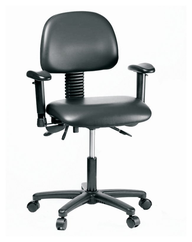 Vinyl Chair - Desk Height with Adjustable Arms and Casters in Grade B Vinyl, Each
