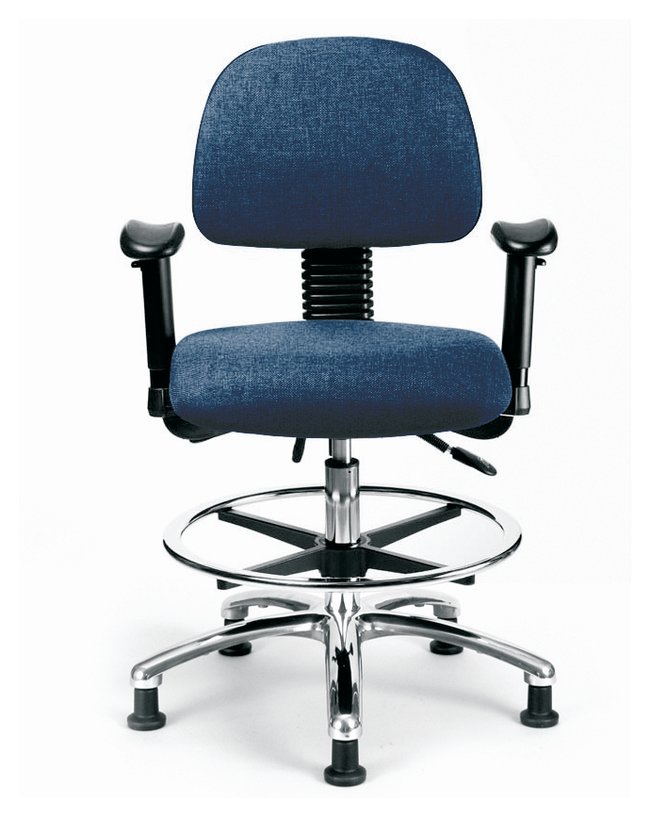 Fabric Chair Chrome - High Bench Height with Seat Tilt, Adjustable Arms, Chrome Foot Ring, and Stationary Glides in Fabric, Each