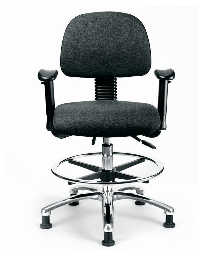 Fabric Chair Chrome - High Bench Height with Seat Tilt, Adjustable Arms, Chrome Foot Ring, and Stationary Glides in Fabric, Each