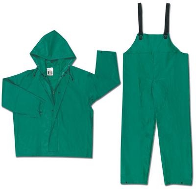 Chemical Suit^ Dominator* .42mm PVC/NYLON/PVC two piece suit with attached hood. Green. Size: Small.