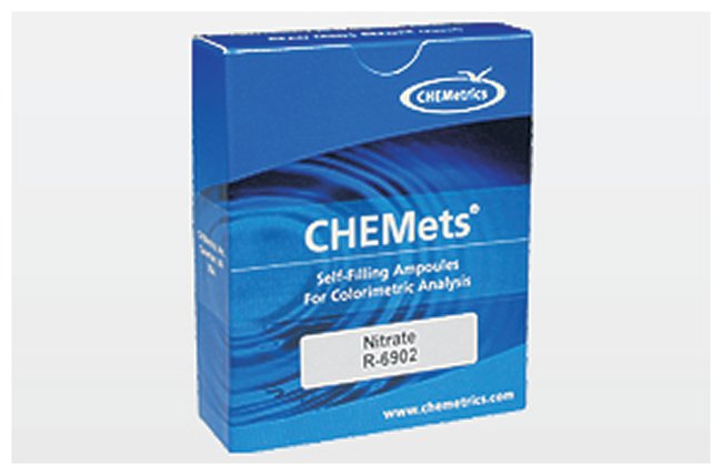 Designed for maximum simplicity and accuracy, Chemets 7 mm diameter ampules feature tapered, prescored tips with reagent vacuum-sealed insideTo perform a test, simply immerse Chemets ampule in the sample, snap off tip and the correct sample volume is quickly drawn inside the ampuleIn two minutes or less, the reaction between the sample and reagent yields a color—which can then be compared to appropriate color standard for quantification of resultsComparators have two-year shelf life