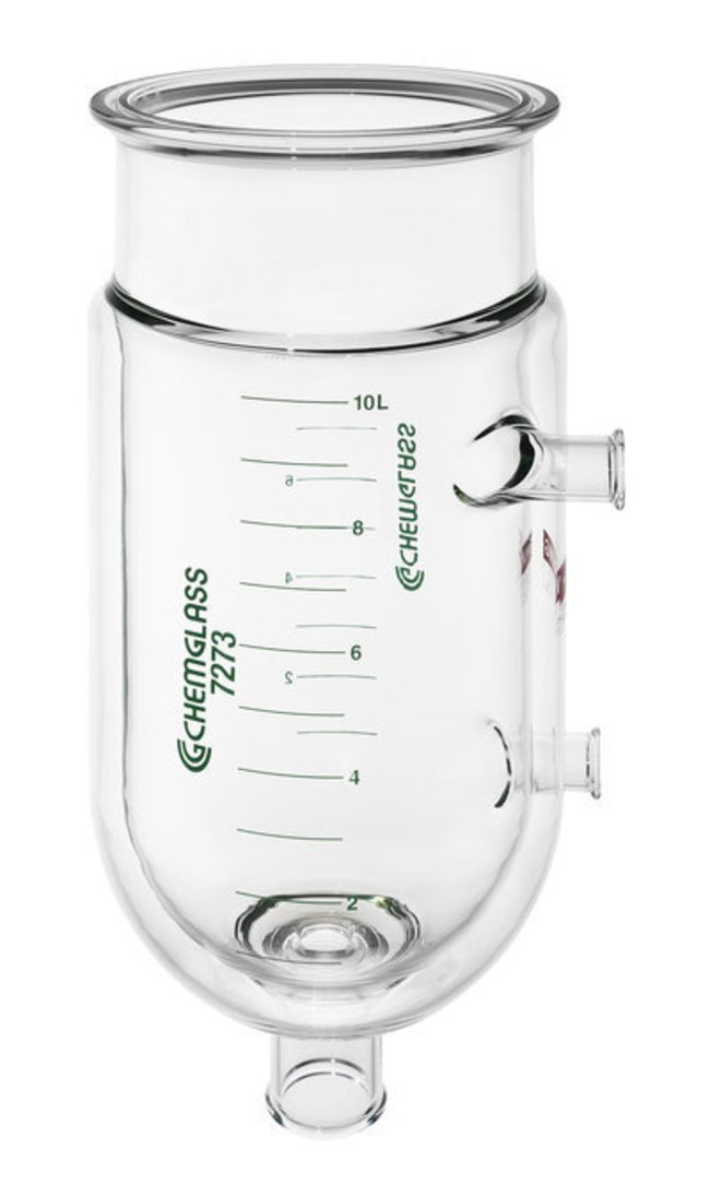 Process reaction vessel, jacketed, large scale, 10L, Flange I.D.: 200mm, 2 BP Detachable Valve, Overall Height: 490mm, H:W Ratio: 1.9:1, I/O: 1 BP, Jacket Capacity: 5L, Each