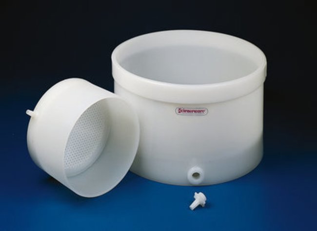 Filter Funnel, Buchner, Polyethylene, Table Top, Removable Filter, I.D.: 610mm, 330mmH, Perforated Filter Plate, One piece design with filter plate supported by multiple ring grid, Vacuum connector accepts 12.7mm I.D. tube