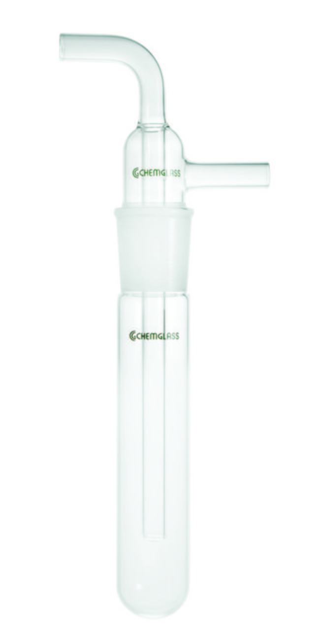 Vacuum Trap, Complete, 54mm Body OD x 275mm Body Length, 25mm OD Side and Inner Tubes, 50/50 Joint, EACH, Two piece vacuum trap connected with an inner and outer joint to facilitate cleaning, with the top inlet tube bent at a 90degree ang