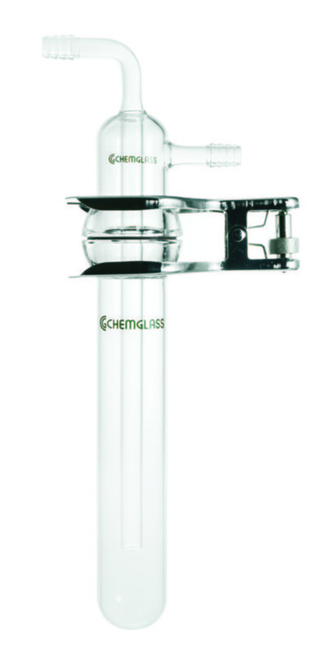 Vacuum Trap; O-Ring Style; Complete; Chemglass; no. 30; O-Ring Joint; 30mm OD x 225mm Length; supplied with a stopper; lower body; fluoropolymeric o-ring; and stainless steel pinch clamp