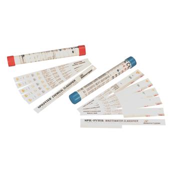 Quickly and easily identifies unknown spillsDistinguishes risks in unknown spilled liquidsClassifies spills for proper treatmentIndoor or outdoor usageStrips quickly indicate the possible presence of a variety of chemicals in unknown liquids. Easy-to-follow chart is available for classifying chemicals. Classifier strips (8225A50 and A53) can be used for chemical (Acid base, oxidizers, Fluoride, petroleum products, Iodine, Bromine, Chlorine) and wastewater applications.