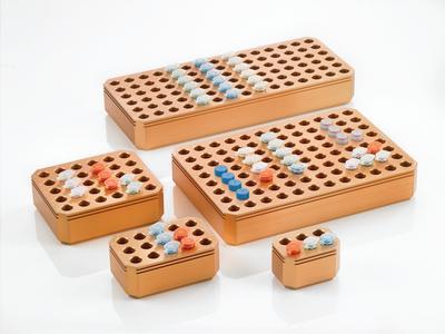 Rack^ Thermo-conductive metal alloy tube racks eliminate inconsistencies which occur due to inserting tubes directly into ice, alcohol baths and other common lab temperature sources. Use on Ice, Dry Ice or lab heating equipment. 2.4 x 1.7 x 1.5 in, Chill block 6 well for 1.5ml and 2ml tube