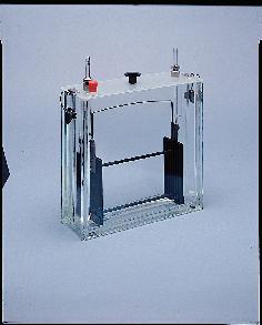 Latch-Lid Chromatotank* Unit^ Heavy glass construction. Stainless steel latching device holds the ground glass surfaces of the lid and tank firmly in place. Interior dimensions: 27Lx7Dx27Hcm. Includes glass developing tank, latch-lid with hardware, equilibration latch-lid and multiplate rack.