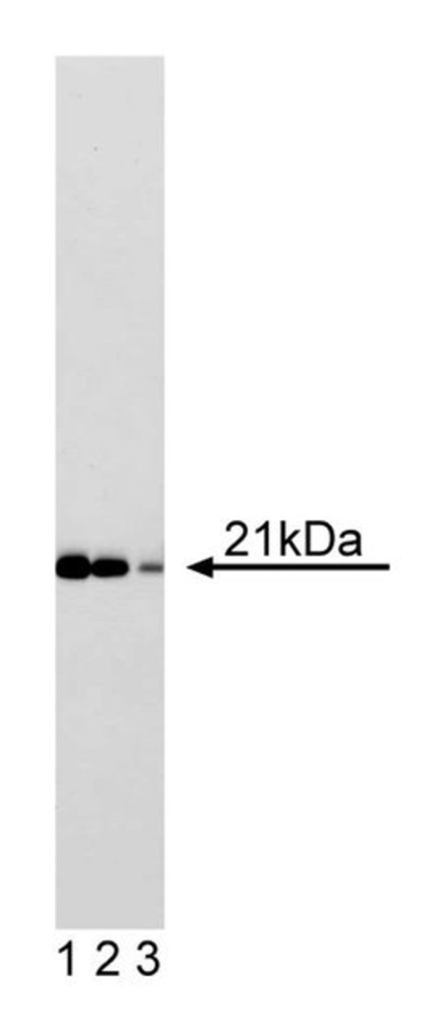 Cip1 (p21) was identified as an inhibitor of cdk activity in a quaternary complex that also included Cyclin D, Cdk4, and PCNA. It has subsequently been shown that Cip1 can directly bind to and inhibit each member of the cdk family, though the affinities vary for each enzyme. Several studies indicate that Cip1 expression is regulated by the p53 tumor suppressor protein. For example, following DNA damage, Cip1 becomes transcriptionally induced in a p53-dependent manner. Thus, Cip1 protein may have a prominent role in mediating cell cycle arrest. Cip1 is also a component of active cyclin/cdk kinases. It has been suggested that Cip1-containing enzymes may transition between active and inactive states through changes in Cip1 stoichiometry. Active complexes appear to contain a single Cip1 molecule, while the inactive complexes have multiple Cip1 subunits. When multiple subunits are complexed with a cdk, cyclin, and PCNA, these Cip1 molecules can block the access of cdk-activating kinase (CAK) to cdk, thus preventing its phosphorylation and activation. However, inhibition of cdk activity by Cip1 does not appear to be dependent upon this mechanism. Other studies on DNA replication indicate that Cip1 can inhibit this process in vitro by directly binding to PCNA, a DNA polymerase-δ processivity factor.Immunofluorescence, Immunohistochemistry, Immunoprecipitation, Western Blotting