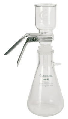 SUPPORT ASSEMBLY, 47MM FRITTED^ Replacement Components. Clamp, 47mm Aluminum. Glassware system for vacuum filtration using 47mm membranes. Assembly is designed for use with vacuum manifolds or optional plastic coated filtering flask. Support base has a sealed-in coarse porosity fritted disc.