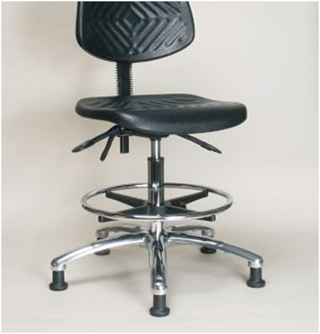 Fisherbrand™ Polyurethane Chairs in Chrome are height adjustable for 42 in. work surface and feature ergonomic adjustments, chrome adjustable foot ring, & stationary glides. Self-skinning chemical, soil, and puncture resistant polyurethane makes this ideal for any environment.