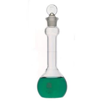 Wide mouths allow easy access into these mixing bulb volumetric flasks for applications such as dissolving tablets and other solids.Mixing bulb in neck accommodates approximately one tenth of the flask’s total volume and is designed to aid in dissolving or mixing the contents of the flaskCalibrated to contain, with graduation ring blasted on the neck850100 Standard Taper ground glass pennyhead stopper includedDesigned from ASTM Specification E288, Class A requirementsManufactured from 33 expansion, low extractable borosilicate glass conforming to USP Type I and ASTM E438, Type I, Class A requirement