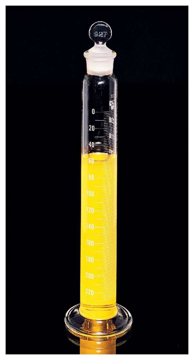 Calibrated “To Contain”Double metric scaleWhite-enamel graduationsGround-glass pennyhead stoppers First 10% of volume not graduatedAutoclavable up to 121°C, 10- to 15-minute intervals recommended