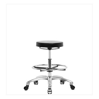 Clean Room Polyurethane Medium Bench Height Stool with Chrome Base, Chrome Foot Ring, Chrome Casters, Each