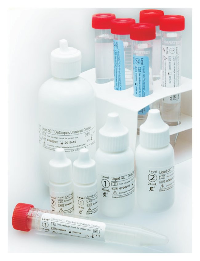 For manual and automated test methodologiesFor use as assayed quality control materials for Glucose, Bilirubin, Ketones, Specific Gravity, Blood, pH, Protein, Urobilinogen, Nitrite, Leukocytes, hCG, Microalbumin, Creatinine, and GalactoseDipScopics™ also contains red blood cells, white blood cells, and crystals for microscopic evaluation of urine sediment