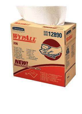 Wypall X90 Cloths 8.3 x 16.8in Pop-Up Box^ 2-ply Hydro-entangling polyester fiber for softness and oil absorbency and wood fiber for water absorbency. For heavy wiping, prepping surfaces with solvents, and cleaning metal shavings and rough surfaces. 68 cloths/pack, 5 packs/case (340 cloths/case)