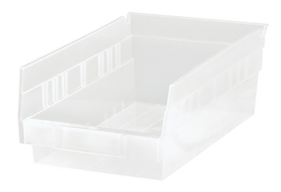 Bin^ High shelf econony bin clear polypropylene 4in, 11 5/8in x 6 5/8in, with a molded-in label holder, built-in rear hanglock whicn allows bin to tilt out for complete access when on shelving. edges are reinforced for added strength
