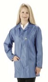 EconoShield* ECX-500 Lab Coat^ Conductive, non-flaking, and non-sloughing. Static decay rate of fabric is 5000V to 500V in less than 0.1 seconds, providing excellent static shielding. Mid-thigh length, with a lapel collar and three pockets. Color: blue. Size: XX-Large.