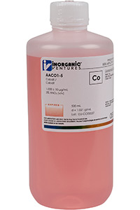 1000 ppm (µg/mL) Cobalt for AA is a 500mL reference material set in a nitric acid matrix for stability. This cobalt standard is Traceable to NIST and manufactured in accordance with our stringent Quality Assurance guidelines. One year Expiration Date.