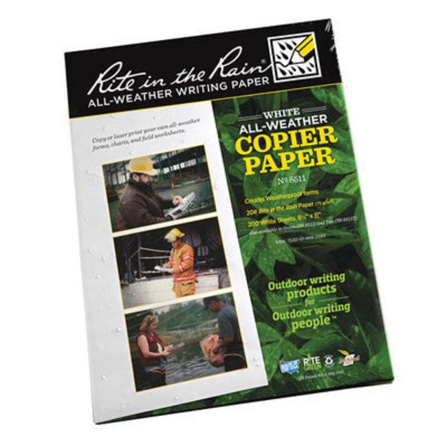 Copy or laser print your own forms, charts, maps, and worksheets. Choose from Rite in the Rain all-weather paper. 200 sheets Note Not for use with ink jet printers.
