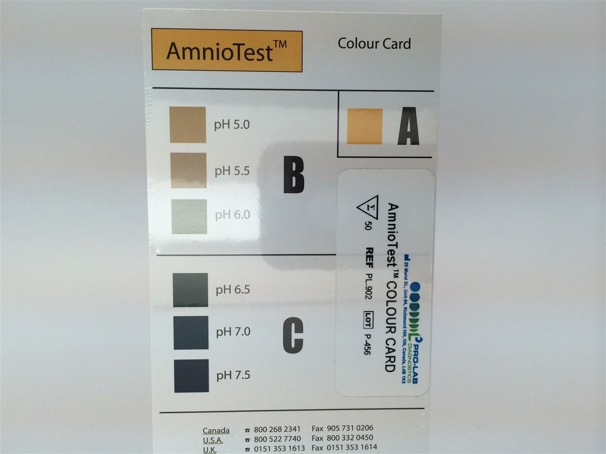 AmnioTest* Color Interpretation Cards^ AmnioTest* Color Interpretation Cards, designed to assist in the detection of rupture of the fetal membrane, cost effective, reliable, and simple to use point-of-care screen test to aid in the detection of amniotic fluid in near-term patients, Size: 50 cards
