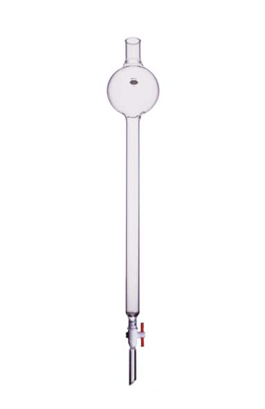 The reinforced top and tooled lower end of this KIMAX® column provide extra strength and a tight, leakproof fit with an all-PTFE stopcock. An o-ring has been added under the PTFE fitment to maintain a liquid-tight seal over a large temperature range (0-100 °C), Liquid contacts only glass and PTFE, Stopcock is easily removed, providing easy access to column packing, Tip and stopcock assembly are available as replacement components, has a 250 mL reservoir at the top of the column