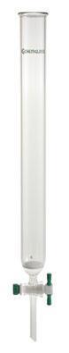 COLUMN, CHROMATOGRAPHY, FLUOROPOLYMER RESIN STOPCOCK, WITH FRITTED DISC^ Stopcock bore: 4mm. Effective len: 24in. (601mm). Column ID: 3.0in. (75mm). Similar to CG-1186 but with a sealed in COARSE porostiy fritted disc to support column packing. Lower end of the column has a round bottom.