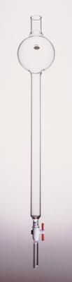 Chromatography Column with Reservoir and Straight All-PTFE Stopcock Assembly CHROMAFLEX^ Approx. Inside Dia. (mm); 19. Approx. Column Length (mm); 300 KIMAX column with a 250 mL reservoir at the top of the column.