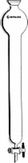 COLUMN, CHROMATOGRAPHY, SPHERICAL JOINT, WITH RESERVOIR, FLUOROPOLYMER RESIN STOPCOCK^ 100ml. I.D;.50in.; Effective Length: 8in. Joint size: 35/20. Stopcock bore: 2mm. Similar to CG-1202 but with a COARSE porosity fritted disc sealed into the lower end of the column for packing support.