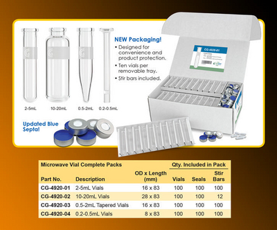 Vials, Microwave, Complete package, 0.2-0.5ml microwave vials, 8mm od x 83mm long^