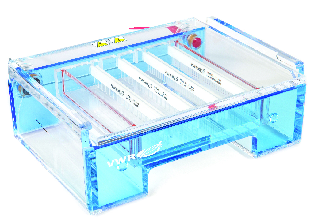 MIDI S is capable of rapidly running up to 160 samples. It is a compact, but highly efficient electrophoresis system., The MIDI S and MIDI E×W are designed for the high resolution separation of medium sample numbers and provide flat, even banding patterns and consistent results. MIDI S is capable of rapidly running up to 160 samples. The MIDI E×W system gel size, 23×14 cm (W×L) is ideal when there is a need to run a lot of samples (up-to 200) in a short distance, for example genotyping. These units compact, mid-sized but highly efficient electrophoresis systems. The systems includes all MC-compatible combs to enable rapid loading with a multichannel pipet., 04_BodyText: The gel tray is sealed using end gates that are specifically engineered to fit into the gel tray's precision machined grooves, eliminating the need to seal the tray before pouring gels. There are six comb slots allow for 1, 2, 3 or 4 sets of samples to run equal distances simultaneously. VWR® offers a wide variety of standard and microtiter combs in two thicknesses (1.0 and 1.5 mm)., 05_BodyText: Wall combs and aluminum casting dams are available for these units. The wall comb placed in one of the comb slots can be sealed using tape or agarose of a higher percentage than the gel. Casting dams can be placed anywhere inside the gel tray and due to the optimal fit and the heat conductance of the material do not need to be sealed with tape or agarose. Chamber and all other components are fabricated from cast acrylic with CNC machined parts for unsurpassed durability in the most demanding laboratories., 02_BulletPoint: Color-coded sealed platinum electrodes and gold plated banana plugs resist corrosion | Fluorescent ruler silk screened onto the gel tray | Gel tray has effective rubber sealed 'end gates' to allow gel pouring in the tray | End gates are CNC machined to ensure a perfect fit | Comb specifications are clearly indicated on each comb | Four combs are provided, two each 17 well and 34 well (1.5 mm thick) | Includes a safety lid with retractable sheathed leads, Final SAP Desc Link: 6062079, SAP Description Status: Ready, MIDI S is capable of rapidly running up to 160 samples. It is a compact, but highly efficient electrophoresis system., The MIDI S and MIDI E×W are designed for the high resolution separation of medium sample numbers and provide flat, even banding patterns and consistent results. MIDI S is capable of rapidly running up to 160 samples. The MIDI E×W system gel size, 23×14 cm (W×L) is ideal when there is a need to run a lot of samples (up-to 200) in a short distance, for example genotyping. These units compact, mid-sized but highly efficient electrophoresis systems. The systems includes all MC-compatible combs to enable rapid loading with a multichannel pipet., 04_BodyText: The gel tray is sealed using end gates that are specifically engineered to fit into the gel tray's precision machined grooves, eliminating the need to seal the tray before pouring gels. There are six comb slots allow for 1, 2, 3 or 4 sets of samples to run equal distances simultaneously. VWR® offers a wide variety of standard and microtiter combs in two thicknesses (1.0 and 1.5 mm)., 05_BodyText: Wall combs and aluminum casting dams are available for these units. The wall comb placed in one of the comb slots can be sealed using tape or agarose of a higher percentage than the gel. Casting dams can be placed anywhere inside the gel tray and due to the optimal fit and the heat conductance of the material do not need to be sealed with tape or agarose. Chamber and all other components are fabricated from cast acrylic with CNC machined parts for unsurpassed durability in the most demanding laboratories., 02_BulletPoint: Color-coded sealed platinum electrodes and gold plated banana plugs resist corrosion | Fluorescent ruler silk screened onto the gel tray | Gel tray has effective rubber sealed 'end gates' to allow gel pouring in the tray | End gates are CNC machined to ensure a perfect fit | Comb specifications are clearly indicated on each comb | Four combs are provided, two each 17 well and 34 well (1.5 mm thick) | Includes a safety lid with retractable sheathed leads, VWR® MIDI S Horizontal Gel System, No. of samples: 10 - 136, Cat. No.: 76314-798, Buffer volume: 1000 ml, Gel size: 15×15 cm, Final SAP Desc Link: 6062079, SAP Description Status: Ready