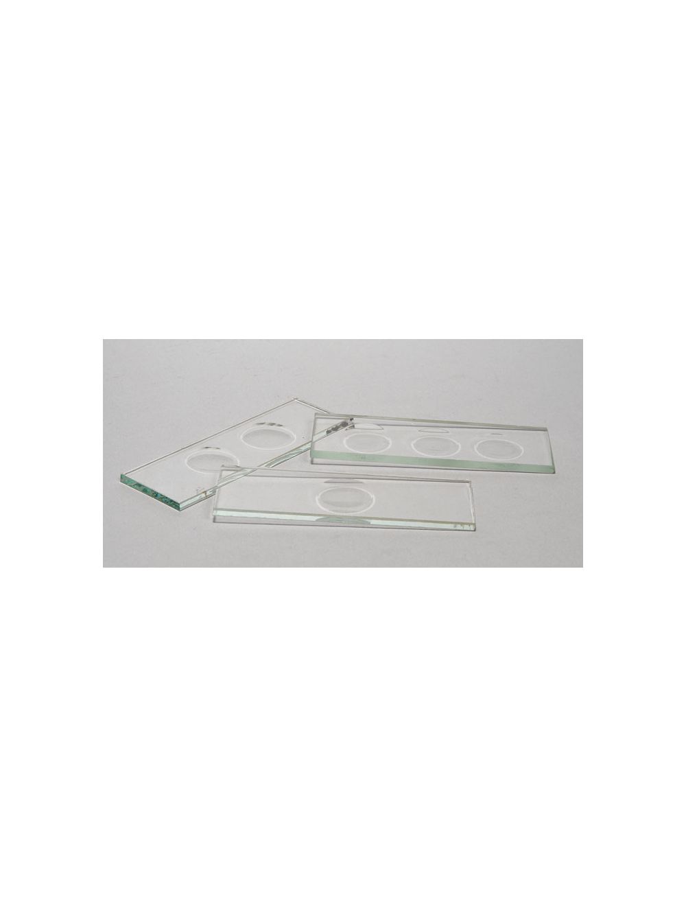 Pre-cleaned slides with deep concavities are 75mm x 25mm, 3mm thick, and are packaged in boxes of 12. Spherical concavities are approximately 16mm in diameter and 0.8mm deep. Available with single, double, or triple concavities. Made of quality sheet glass, with ground edges.