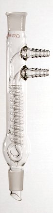 With an internal, coil-type cold finger, Standard Taper outer joint at the top, Standard Taper inner drip joint at the bottom, 2830000 does not have a drip joint, Two hose connectors at the top for water inlet and outlet, Manufactured from 33 expansion, low extractable borosilicate glass conforming to USP Type I and ASTM E438, Type I, Class A requirements