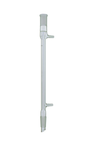 The narrow annular space of the West design provides high cooling efficiency due to the increased flow rate of the cooling medium. Full length 24/40 joints, Standard Taper outer joint at the top and Standard Taper inner drip joint at the bottom