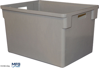 Heavy Duty Box^ HEAVY-DUTY NESTING BOX USED FOR STORAGE AND WORK-IN-PROCESS. NESTS WHEN EMPTY FOR SPACE-SAVING STORAGE. HOLDS 200-300 LBS. WITHSTANDS TEMPS FROM -60F TO 250F. CLEANS EASILY. STANDARD COLORS, GREEN, GRAY, WHITE. PUNCHED OR METAL REINFORCED HAND HOLES OPTIONAL.