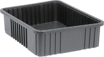 Conductive Dividable Grid Container 22-1/2In^ Conductive Dividable Grid Container, Ensure Safe And Efficient Storage Of Electronic Components, Material: Carbon-Filled, Copolymer Polypropylene, No. Of Divider Slots Long: 11, No. Of Divider Slots Short: 15, Dimension: 22-1/2X17-1/2X6I