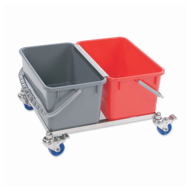 Compact design is ideal for smaller cleanroomsContec's Bucket System 2772-KIT is a fully autoclavable stainless steel rolling cart with two 6.5 gallon (25 L) polypropylene buckets The lightweight, yet substantial stainless steel cart with heavy-duty casters is easy to maneuver around any size cleanroom The quiet, heavy-duty wheels feature stainless steel frames and locking brakes The red and gray double bucket system allows for differentiation between cleaning and rinsing solutions The autoclavable polypropylene buckets are compatible with two stainless steel sieves (sold separately) 2768 is a curved sieve that is used with our EasyCurve™ mop. 2767 is a flat sieve for Contec VertiKlean MAX and QuickTask flat mops. Both sieves are used with the stainless steel 2766 frame designed for our 6.5 gallon (25 L) bucket
