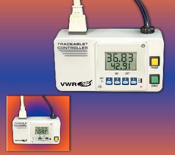 Here is the corrected text: These controllers perform reproducible stirring, heating, or pumping times and can be used for timed shutdown or repeated on/off timing during any test. The turn-off controller counts up and turns off equipment at the end of a set period. It is programmable in three interval settings: 0.01 to 99.99 seconds, 1 to 99 minutes, or 1 to 99 hours. A manual override pause switch instantly stops equipment without disturbing the program. Intuitive operation allows programming in less than five seconds. An internal NiCad battery maintains programs in the event of a power outage. The three-pronged grounded receptacle relay controls apparatus up to 120 V, 15 A, 1800 W, and ¹/₃ hp. A red LED indicates the on/off status of attached equipment, while LCD digits are 1.3 cm (¹/₂") high. The controller features an internal battery that maintains programs in the event of a power outage, allowing for timed shutdown or repeated on/off timing during any test. It also has an LED display. A serial-numbered certificate is provided from an ISO 17025 calibration laboratory accredited by A2LA to indicate traceability to standards provided by the National Institute of Standards and Technology. The turn-off controller (Cat. No.: 36934-170) measures 15.2 × 7 × 8.3 cm (6 × 2¾ × 3¼") and weighs 340 g (12 oz.), with an accuracy of 0.01%.