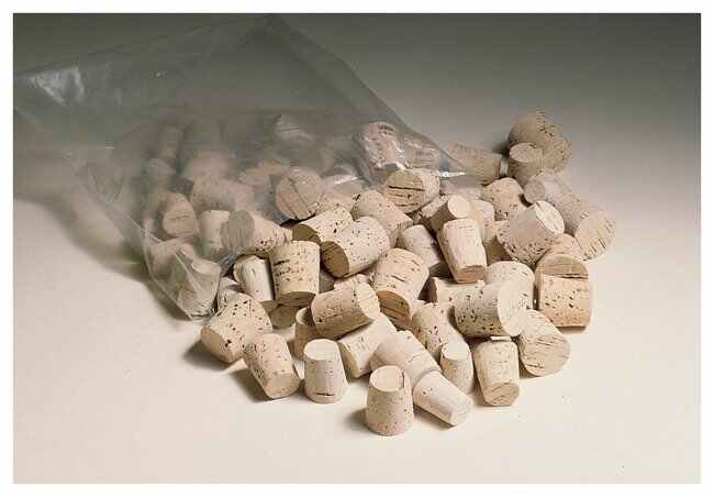 Choice of two grades: laboratory grade (corks cut from selected wood), or superior grade (corks cut from high-quality wood)Assorted lengths; Sizes: 6-15