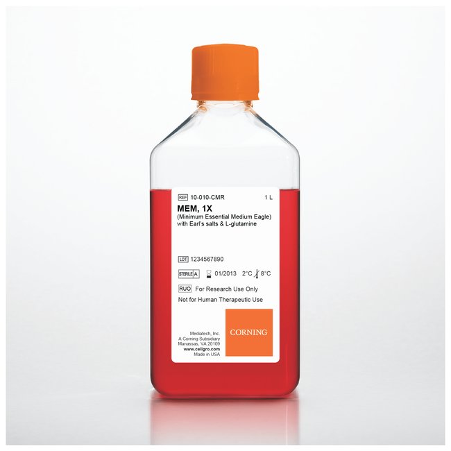 Minimum Essential Medium (MEM) is a common cell culture medium developed from early work using Basal Medium Eagle (BME) with normal mammalian fibroblasts and certain subtypes of HeLa cells. This research indicated that additions made to BME aided cell propagation. MEM is modified with higher concentrations of amino acids to more closely approximate the protein composition of mammalian cells. When supplemented with serum, MEM has been used for cultivation of a wide variety of cells grown in monolayers, such as fibroblasts. This formulation contains Earle's salts and L-glutamine.This product(s) resides on a Fisher Scientific GSA or VA contract. If you are viewing this page as a nonregistered user, the price(s) displayed is List Price. To view your GSA or VA contract pricing, log in using your account number, or become a registered user by contacting one of our Customer Service teams. You can also view your contract price by searching for this item(s) on GSA Advantage. To place an order, contact Fisher Scientific Customer Service.