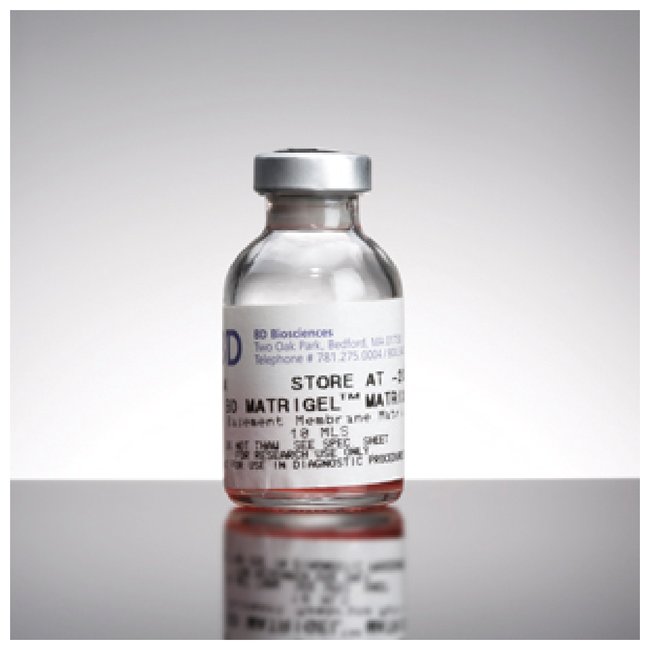 Produces a biologically active matrix material resembling the mammalian cellular basement matrix. Corning™ Matrigel™ GFR Basement Membrane Matrix provides a physiologically relevant environment for studies of cell morphology, biochemical function, migration, invasion, and gene expression.