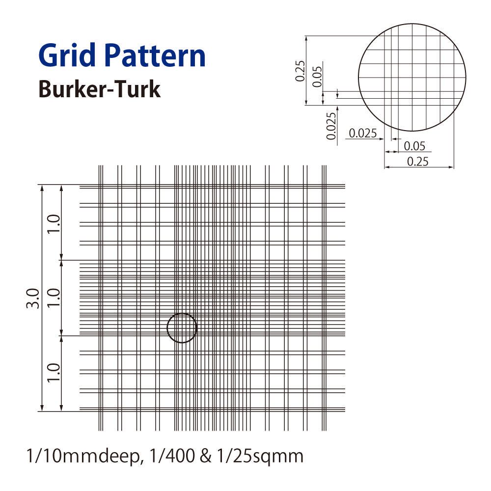 Cell Counting Plate, Burker-Turk Type, Disposable, Grid pattern: 1/10mm deep, 1/400/1/25 sqmm^