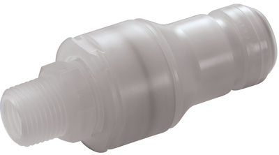 Quick Disconnect Coupling^ High purity. Valved insert, 1/2 male national pipe thread. Material: Polypropylene.
