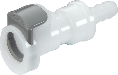 Quick Disconnect Coupling^ General-purpose grade. Body, 1/4 hose barb. Shrouded clip. Material: Acetyl.