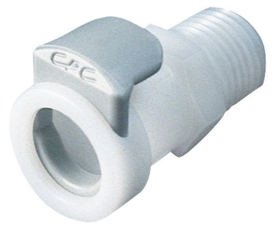 Quick Disconnect Coupling^ General-purpose grade. Valved body, 1/4 national pipe thread. Material: Acetyl.
