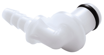 Quick Disconnect Coupling^ General-purpose grade. Valved insert, 1/8 hose barb elbow. Material: Acetyl.