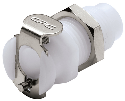 Quick Disconnect Coupling^ General-purpose grade. Body, 10-32 national pipe thread, panel mount. Material: Acetyl.