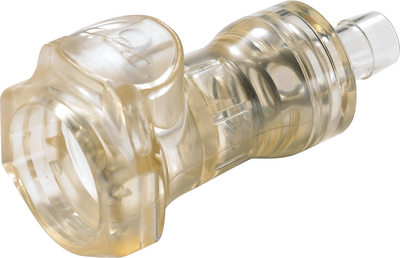 Quick Disconnect Coupling^ Medical grade. Valved body, 3/8 hose barb. USP Class VI. Material: Polysulfone.