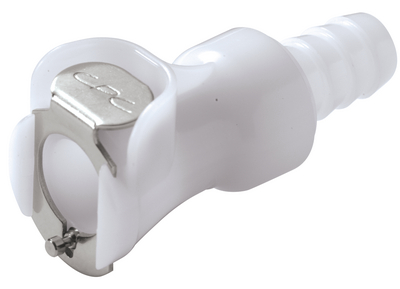Quick Disconnect Coupling^ General-purpose grade. Valved body, 3/8 hose barb. Material: Acetyl.