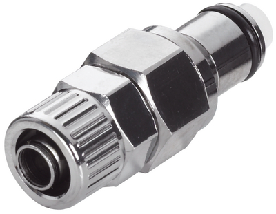 Quick Disconnect Coupling^ General-purpose grade. Valved insert, 3/8 poly tube compression nut. Material: Chrome plated brass.